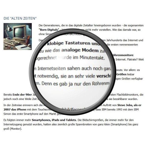 Es folgten immer mehr Smartphones, iPads und Tablets. Die Bildschirmgrößen, die immer mehr für den Internetzugang genutzt wurden, hatten also ziemlich große Spannbreiten von ganz klein (Smartphone) bis ganz groß (Monitor).